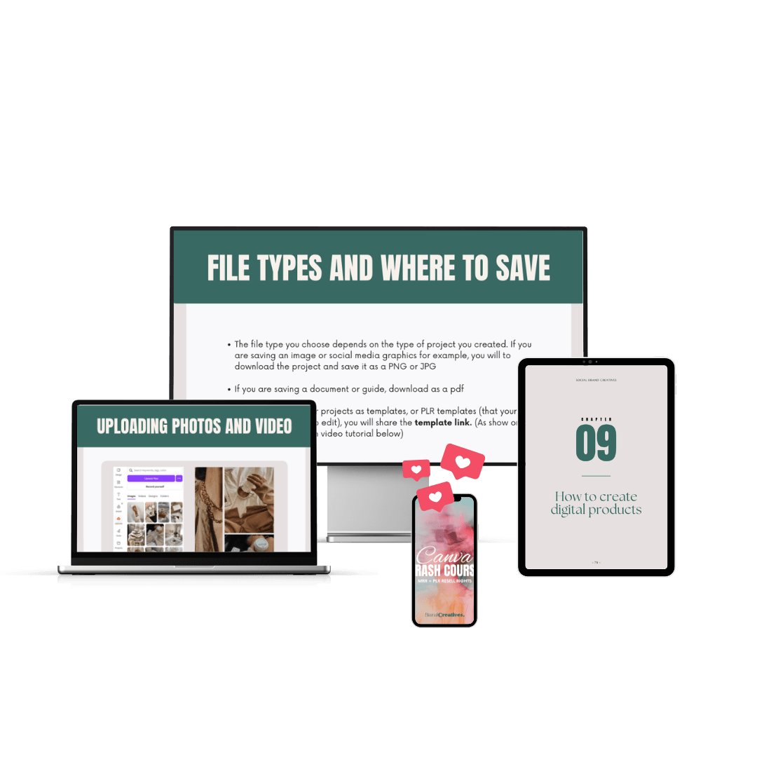 Create aesthetic content, build your first digital products with ease, and finally enjoy opening Canva, PLUS turn this entire Canva crash course into a product you can sell for 100% profit.